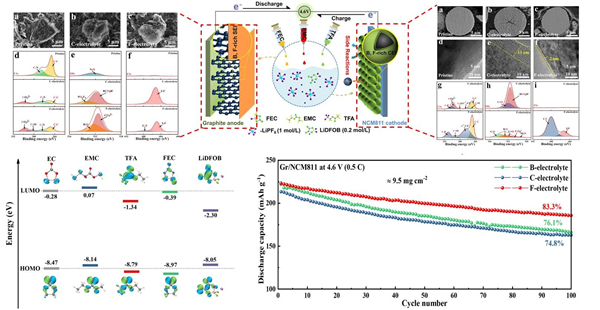 圖 高壓氟化電解液體系在電極電解液界面的表現、DFT計算以及全電池循環性能