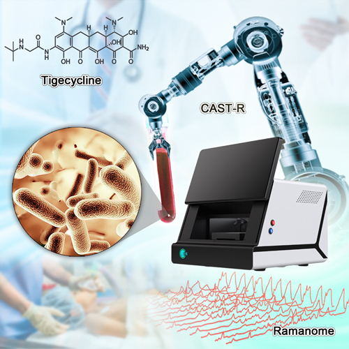 多重耐藥菌(MDR)和其耐藥性的傳播已成為全球公共衛(wèi)生問題,MDR引起的血流感染往往病情較重,快速完成藥敏檢測(cè)并采取有針對(duì)性的治療措施,對(duì)于降低患者的死亡率至關(guān)重要。但是,目前病原藥敏試驗(yàn)耗時(shí)很長(zhǎng),導(dǎo)致臨床醫(yī)生主要依賴經(jīng)驗(yàn)進(jìn)行治療。開發(fā)一種簡(jiǎn)單、快速、準(zhǔn)確,而且臨床廣譜適用的藥敏表型試驗(yàn)方法一直是臨床上的迫切任務(wù)。針對(duì)這一難題,青島能源所單細(xì)胞中心與北京協(xié)和醫(yī)院、青島大學(xué)附屬醫(yī)院和青島星賽生物等單位合作,以替加環(huán)素治療敗血癥為模型,利用重水標(biāo)記單細(xì)胞拉曼光譜技術(shù)(D2O-SCRS),建立了自動(dòng)化版本的拉曼病原體藥敏快檢系統(tǒng)(CAST-R),將常見病原體(血液感染陽(yáng)性培養(yǎng)瓶?jī)?nèi))的藥物敏感性實(shí)驗(yàn)(AST)的時(shí)長(zhǎng)縮短至3小時(shí),實(shí)現(xiàn)了十倍加速,可在培養(yǎng)瓶報(bào)陽(yáng)當(dāng)天得出藥敏結(jié)果。該研究成果于近日發(fā)表在mLife 《微生物》雜志。