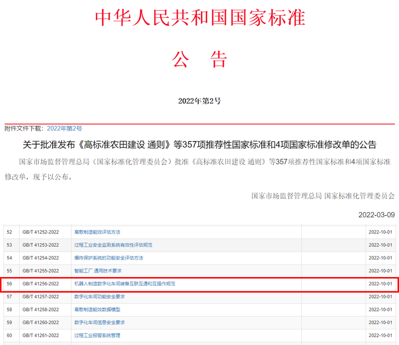 近日,由中國科學院沈陽自動化研究所牽頭制定的“機器人制造數字化車間裝備互聯互通和互操作規范”正式發布,成為我國國家標準(國家標準編號為GB/T 41256-2022),并將于2022年10月1日出版實施。