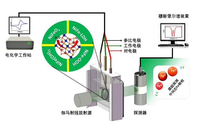原位電化學(xué)57Fe穆斯堡爾譜研究Ni-Fe氧化物催化水氧化反應(yīng)示意圖