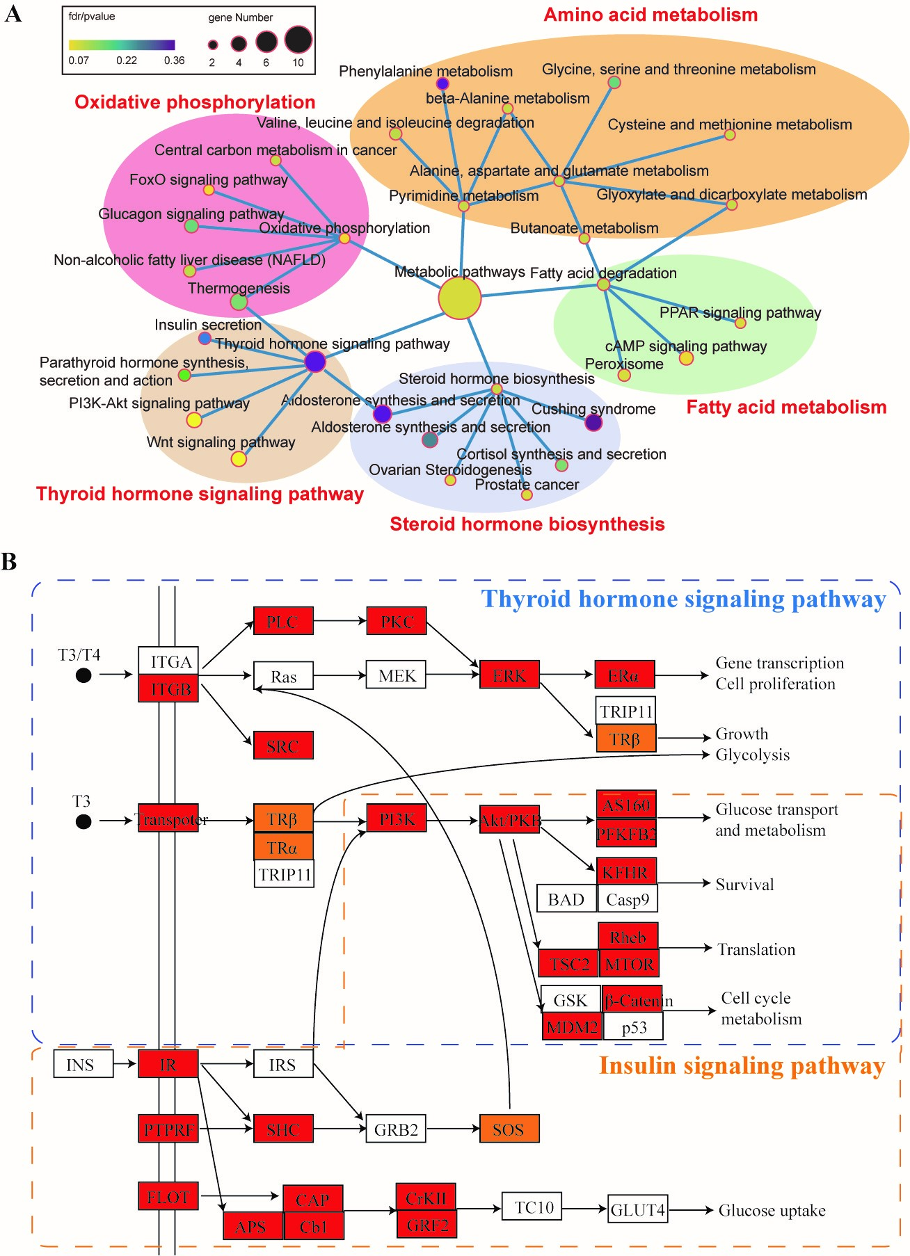 研究人員首先完成了深海水虱基因組的測序和組裝,構建了高質量的基因組圖譜,其基因組組裝大小達5.89 Gb,是目前已測序甲殼動物中基因組最大的物種。研究發現其基因組中轉座元件的含量高達84%,是引起基因組擴張的重要原因。通過比較基因組學分析,研究人員發現深海水虱基因組內多條生長相關信號通路上的基因發生了顯著擴張,包括兩條激素信號通路(thyroid and insulin hormone signaling),mTOR信號通路和Hippo 信號通路,說明深海水虱體型巨大化的形成可能與其強化的生長相關信號通路密切相關。