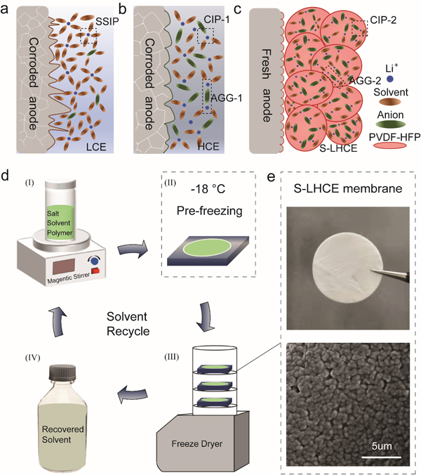 近日,中國科學院金屬研究所的科研人員在前期聚合物電解質離子電導優化的基礎上(Angew. Chem. Int. Ed. 2021, 60, 18448; Adv. Funct. Mater. 2020, 30, 2007172.),提出了固化的局部高濃度電解質策略,通過解耦離子配對和離子傳輸,有效提高了電解質的離子電導率和電解質/電極間的界面兼容性,進而實現了可在寬溫度區間工作及優異快充/快放能力的固態鋰金屬電池。研究成果近期以“Decoupling of ion pairing and ion conduction in ultrahigh-concentration electrolytes enables wide-temperature solid-state batteries”為題發表于Energy & Environmental Science。
