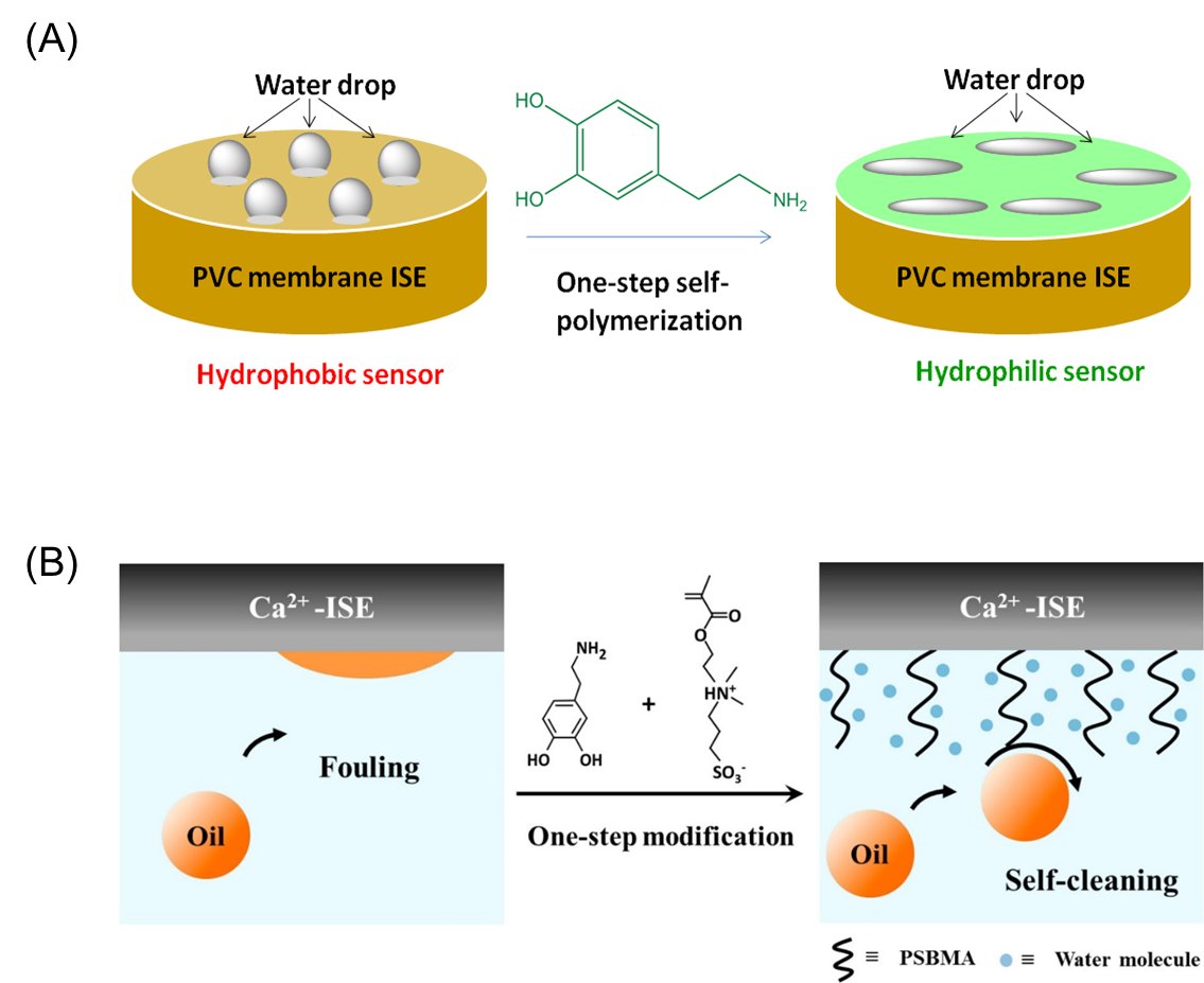 圖1. 基于兩性離子聚合物修飾的自清潔防油污聚合物敏感膜電位型傳感器