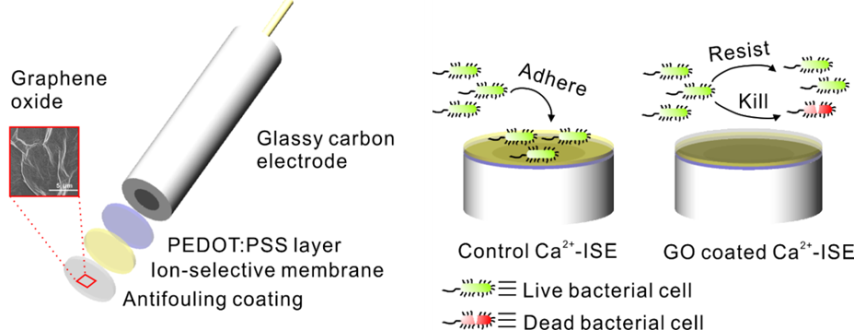 圖3 基于氧化石墨烯的聚合物敏感膜電位型傳感器的構建和防污原理示意圖