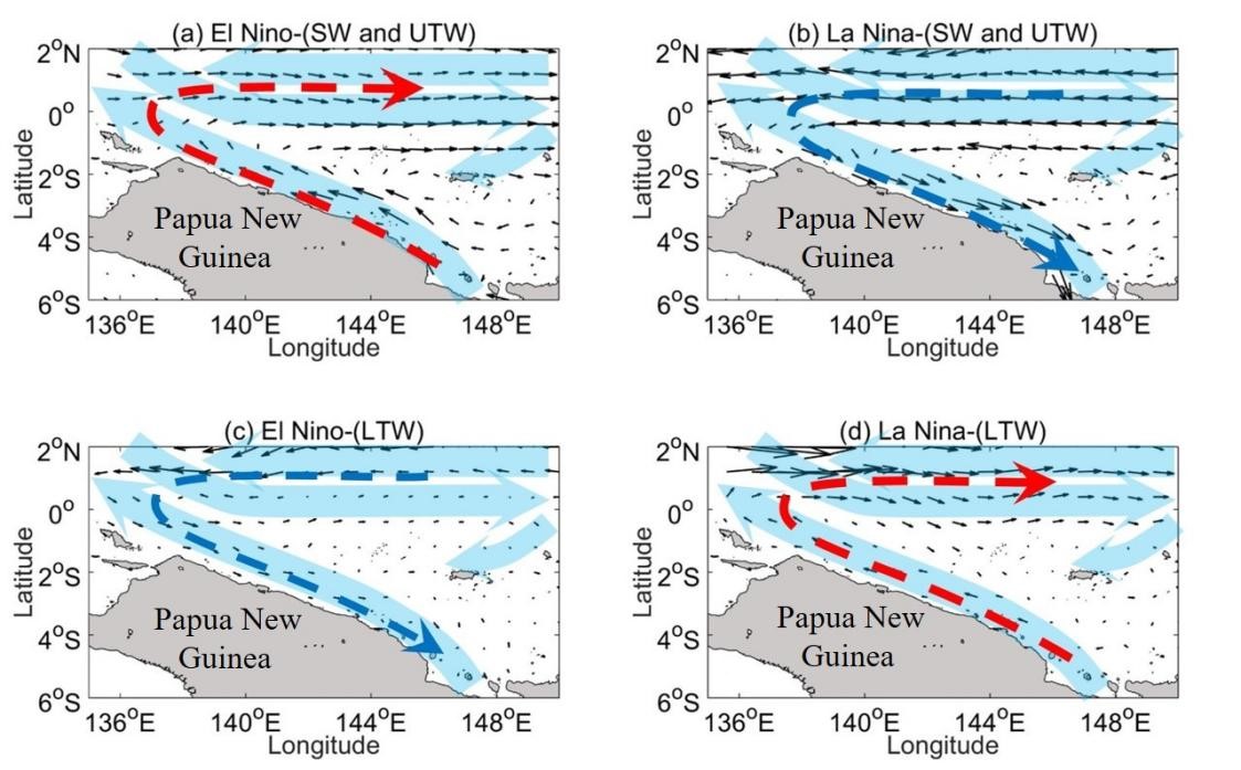 近日,地學領域期刊《地球物理研究雜志:海洋》(Journal of Geophysical Research: Oceans)發表了中科院海洋所胡敦欣院士課題組最新研究成果“Currents off the Papua New Guinea coast during and after the El Nino of 2015-2016”,揭示了2015-2016極端El Nino事件期間熱帶太平洋西邊界流-新幾內亞沿岸潛流的變化規律,以及年際信號的空間分布特征及其與上游環流之間的關系。