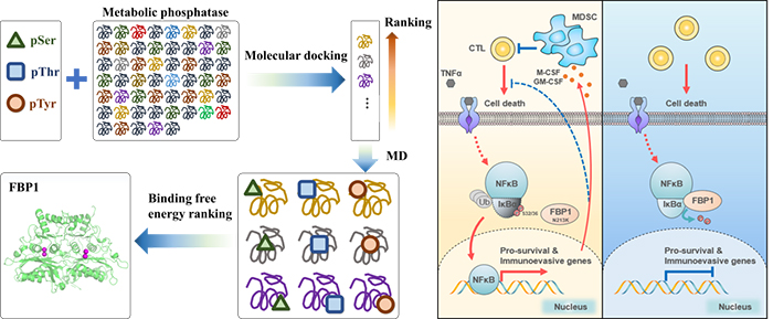 近日,中國科學院大連化學物理研究所分子反應動力學國家重點實驗室分子模擬與設計研究組研究員李國輝團隊與中國科學院分子細胞科學卓越創新中心(上海生物化學與細胞生物學研究所)研究員楊巍維團隊、廣州大學教授王雄軍、復旦大學附屬中山醫院教授李全林等合作,揭示了代謝酶果糖1,6-二磷酸酶1(FBP1)能夠行使蛋白磷酸酶的功能,并證明了FBP1介導的I B 去磷酸化在結直腸癌發生中起到關鍵作用。
