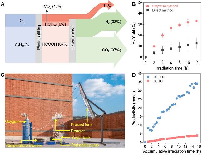 相關(guān)研究成果以“Stepwise photo-assisted decomposition of carbohydrates to H2”為題,于近日發(fā)表在《焦耳》(Joule)上。該工作得到了國(guó)家科技部、國(guó)家自然科學(xué)基金、中科院潔凈能源創(chuàng)新研究院—榆林學(xué)院聯(lián)合基金、中意合作項(xiàng)目等項(xiàng)目資助。