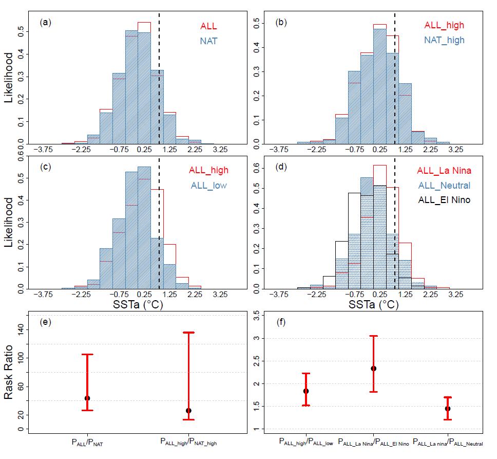 極端天氣氣候事件歸因旨在量化人類活動與自然強迫對特定事件發生頻率或強度等特征的相對貢獻,是氣候變化領域的國際前沿和熱點方向。歸因結果是決策者制定應對氣候變化減緩政策和適應方案的重要科學依據。極端事件歸因研究長期聚焦陸地熱浪、干旱或極端降雨等,對海洋極端事件的關注嚴重不足,極大制約了有關氣候變暖致災風險的全面認知。