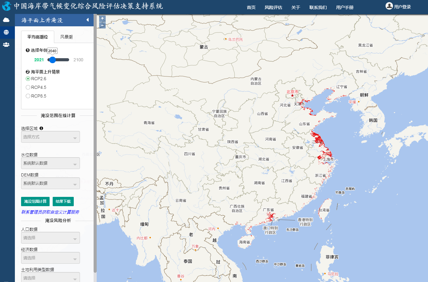 本系統旨在增進海岸帶氣候變化風險評估和決策等方面的科學研究和學術交流,促進科學認知水平的提升,從而為我國沿海地區加強氣候變化風險應對、提升沿海地區韌性水平、促進海岸帶區域可持續發展等提供支持。