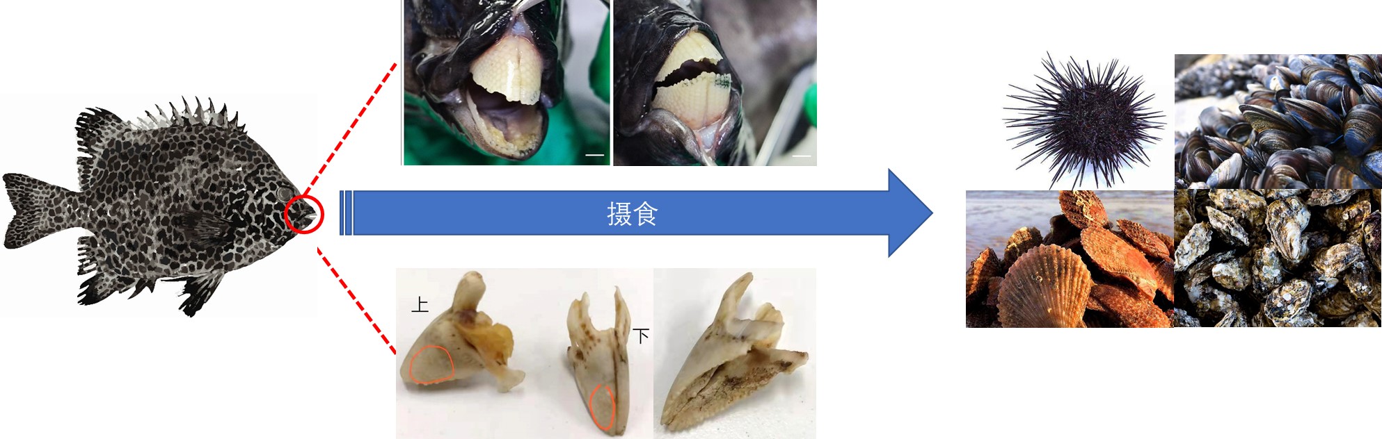 斑石鯛(Oplegnathus punctatus)是我國近年來新開發的重要海水養殖經濟魚種,具有典型的愈合型喙狀齒表型,可攝食牡蠣、海膽等硬殼類食物。海洋所李軍研究團隊在國內率先突破了斑石鯛全人工繁育技術,建立了苗種規模化生產技術(100萬尾/年)及工廠化封閉循環水養殖與網箱養殖相耦合的陸海接力養殖模式,極大地擴大了斑石鯛養殖規模。