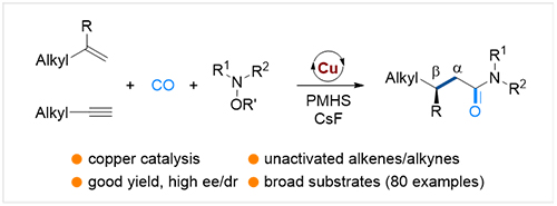 大連化物所發(fā)展銅催化非活化烯烴/炔烴的不對稱氫胺化羰基化反應(yīng)