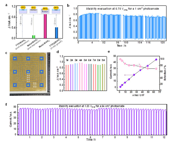 圖3. 嵌入式BiVO4光電極的光電化學(xué)分解水活性評(píng)價(jià)