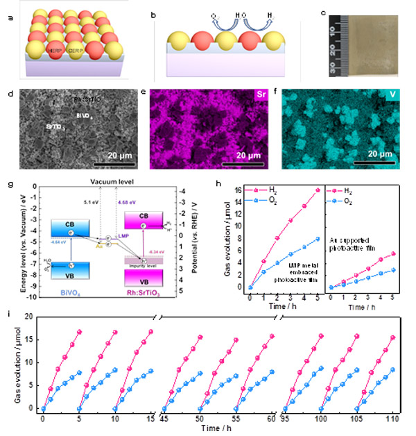 圖4. 利用半導(dǎo)體顆粒植入技術(shù)構(gòu)建的嵌入式Z型仿生人工光合成面板及其可見(jiàn)光驅(qū)動(dòng)的全分解水活性評(píng)價(jià)