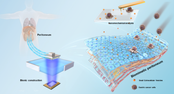 基于仿生腹膜組織,科研人員研究了小細胞外囊泡(sEVs)在腹膜轉(zhuǎn)移過程中的作用。通過對小細胞外囊泡進行納米機械分析,科研人員發(fā)現(xiàn)其楊氏模量可以用來區(qū)分惡性臨床樣本(腹水)和非惡性臨床樣本(腹腔沖洗液)。此外,實驗證實從患者腹水中獲得的小細胞外囊泡能刺激間皮-間充質(zhì)轉(zhuǎn)化,進而促進腹膜轉(zhuǎn)移。研究成果表明,小細胞外囊泡的納米機械分析能夠為胃癌惡性程度提供一種潛在的技術(shù)手段。