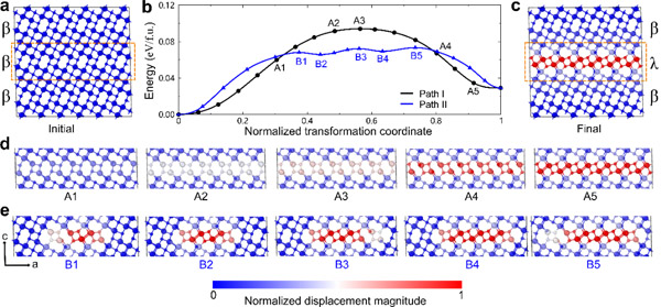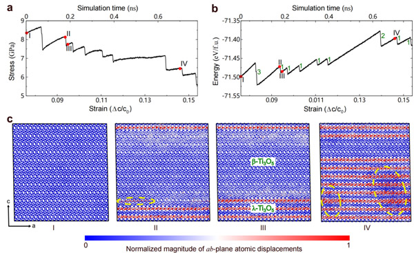 圖3. 亞氧化鈦 - 相變的大尺度原子模擬揭示的逐層轉變機制