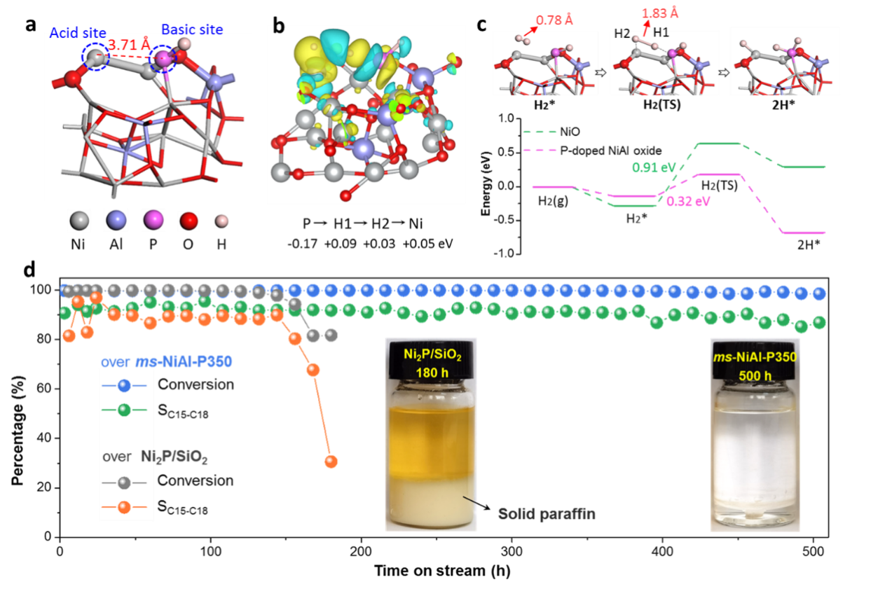 此外,面向實際工業應用,研究組進行了催化劑的批量制備及成型,并驗證了成型催化劑在1000 h連續流反應中仍然具有優異的活性及穩定性。該FLPs催化劑在催化活性、穩定性、成本、環保屬性等方面均具優勢,有望替代商用硫化態催化劑,為綠色柴油產業提供更綠色、更高效的工藝方案。相關研究成果以“Frustrated Lewis pair catalyst realizes efficient green diesel production”為題發表于《Nature Communications》期刊上,這也是Nature系列期刊上首篇關于綠色柴油合成的研究型論文。