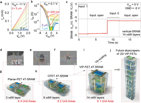 二維半導體“向上”集成互補型邏輯電路SRAM原型器件的實現