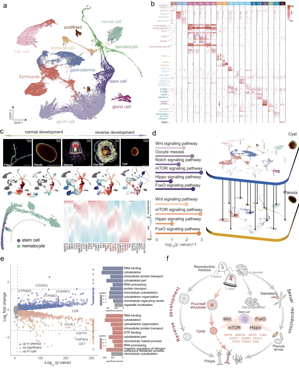 燈塔水母不同發育階段細胞圖譜及逆向發育細胞和基因基礎
