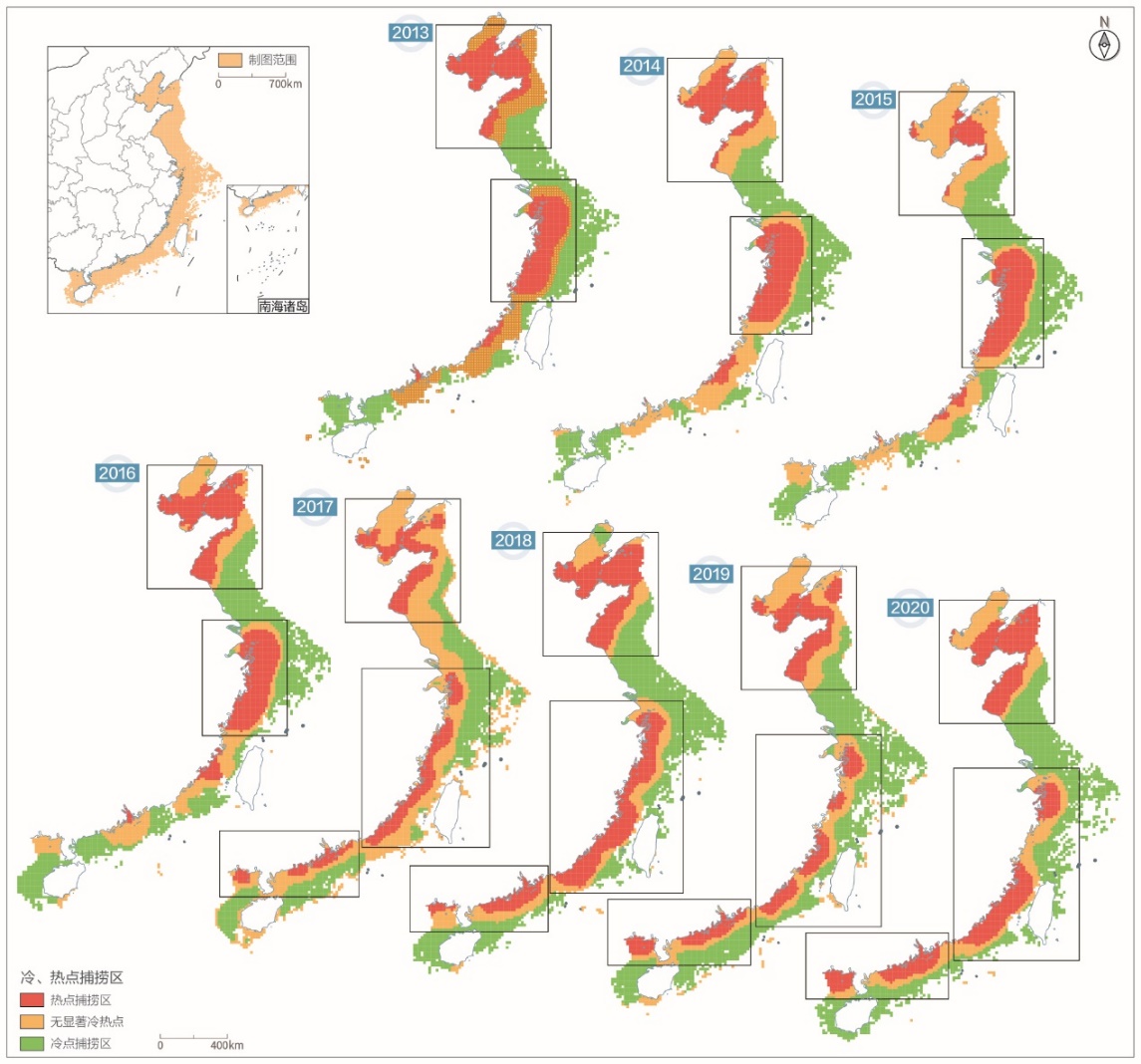圖1. 中國大陸沿海冷熱點漁業捕撈區(Geng et al.,?2023)