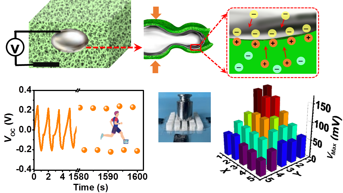 隨著微小型、可穿戴電子設備的快速發展,以及低能耗分布式傳感器需求的與日俱增,從周圍環境中收集能量,為低功耗的電子產品供能,發展自供能技術,吸引了研究人員廣泛的關注。機械運動在自然環境中普遍存在,是綠色、廣泛的能量來源。傳統電磁發電需要復雜的設備,而基于固固界面的摩擦產電,在長期摩擦過程中也存在材料磨損的問題,基于固液界面動態雙電層的機械能產電有望解決上述問題,然而動態雙電層產電機理仍不明確,產電性能也有待進一步提高。