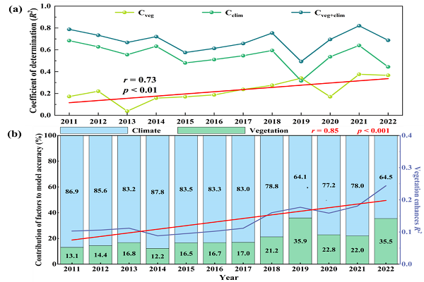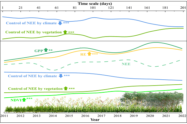 圖2?植被和氣候在不同時間尺度上對NEE的貢獻