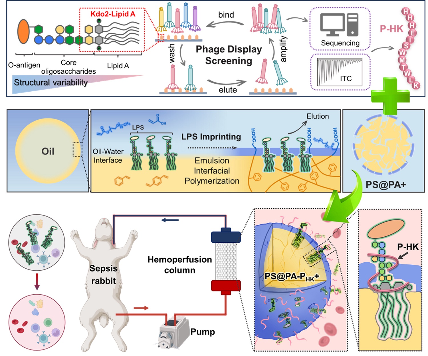 膿毒癥是一種由感染引起的全身炎癥反應的疾病,致死率高,治療成本高昂,是臨床面臨的一大挑戰。脂多糖(又稱內毒素)作為膿毒癥的核心致病因子,在疾病早期及時清除對于阻斷病情惡化、挽救患者生命至關重要。然而,由于脂多糖結構多樣、血液中含量極低且血液成分復雜,實現其高效、高特異性清除一直是臨床面臨的挑戰。