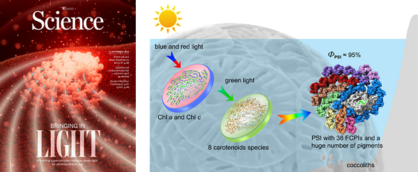 圖1 Science封面報(bào)道以及赫胥黎艾氏藻的PS I-FCPI超復(fù)合體模型