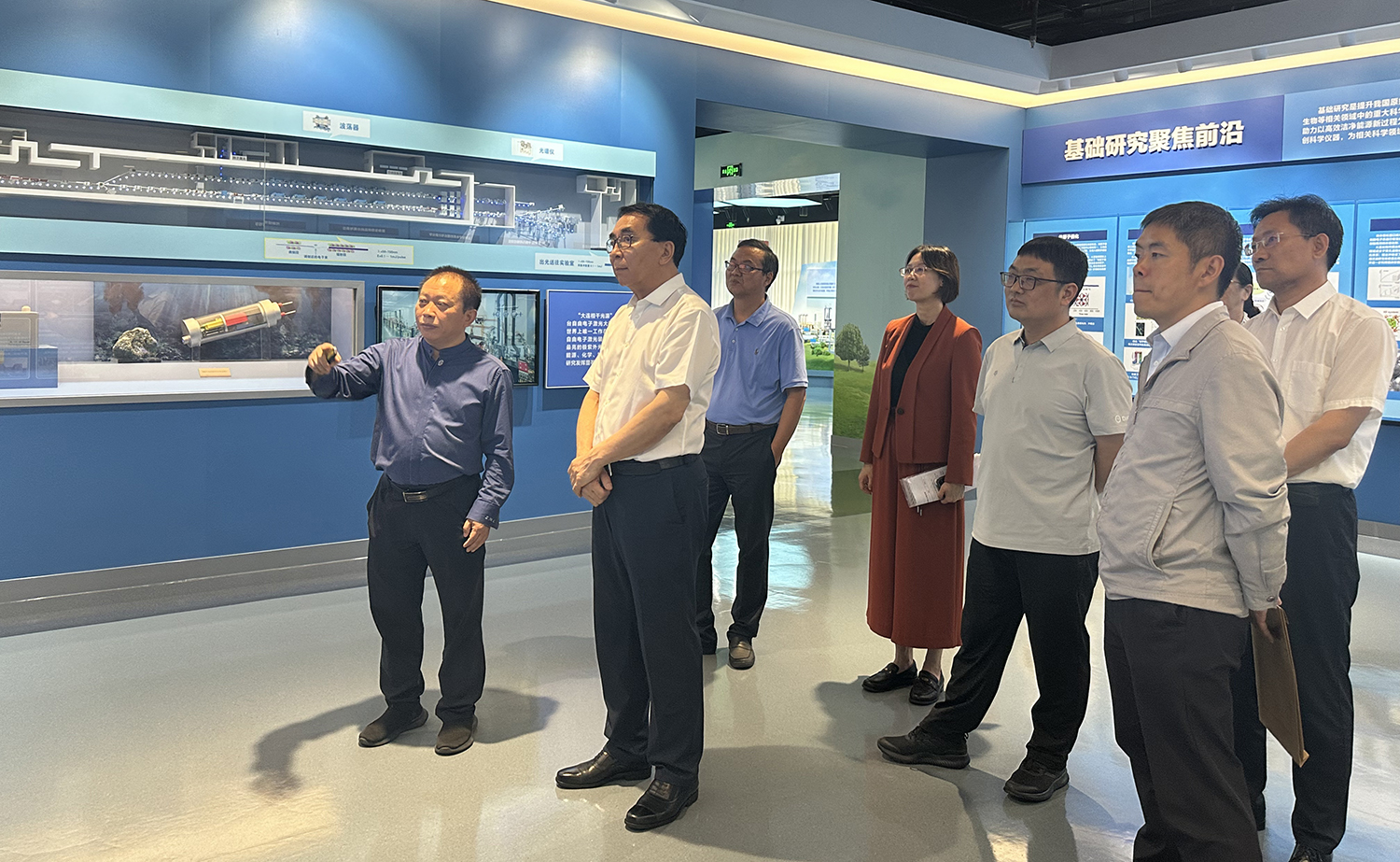 調研期間,白春禮深入調研整合藥物研究中心,與科研人員進行詳細交流,并實地參觀低碳催化與工程研究部和儲能技術研究部。