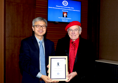近日,國際著名理論化學家、美國科學院院士、美國國際量子分子科學院院士、美國加州理工學院材料與過程模擬中心主任William A.Goddard III教授應張大煜講座邀請,在中國科學院大連化學物理研究所能源基礎樓一樓會議室做了題為“Quantum Mechanics based mechanisms for selective catalytic reactions”的特邀報告。報告由鄧偉僑研究員主持,相關領域的科研人員和學生到場聽取了報告。副所長楊學明代表該所向Goddard頒發了所榮譽研究員證書及張大煜講座證書。