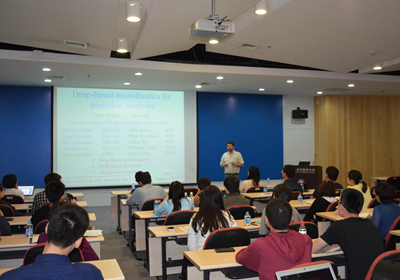 5月25日,應(yīng)秦建華研究員邀請(qǐng),美國(guó)哈佛大學(xué)著名教授David A. Weitz來(lái)到中國(guó)科學(xué)院大連化學(xué)物理研究所進(jìn)行訪問(wèn)交流,并在生物樓報(bào)告廳做了題為“Droplet-based Microfluidics for Precision Medicine”的學(xué)術(shù)報(bào)告,同行的哈佛大學(xué)張慧丹博士做了題為“Directed Evolution and the study of viruses in drop-based microfluidics”的報(bào)告,秦建華主持了報(bào)告會(huì)。
