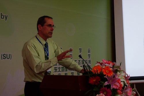 東北地理所所長何興元研究員主持會議并致開幕詞,沈陽生態(tài)所所長姬蘭柱研究員、國際樹木學(xué)會執(zhí)行主席James Skiera、美國南方大學(xué)教授Kamran Abdollahi先后致辭。