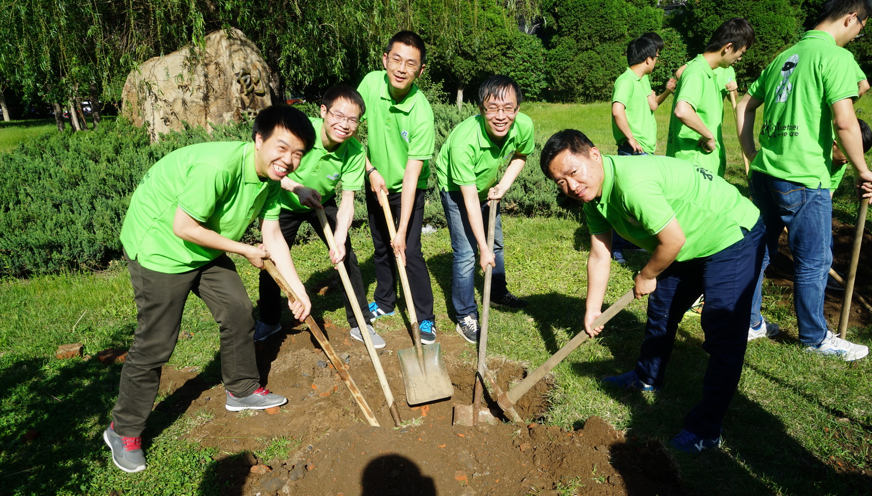 一鍬一鍬,揮灑的是青春的記憶,一點一滴,浸潤的是揚帆遠航的決心。植樹現場,畢業生們揮動鐵鍬,挖好樹坑,細心地填好底土、種下感恩樹,并爭相在樹旁留影。桃李不言,下自成蹊。畢業生們每年通過在所區草坪圍繞“創新石”旁種植一棵楓葉李,若干年后將形成一片“學子林”,留下一片感恩之情。當他們有朝一日再次返回母校,那片屬于沈陽自動化所學子們的學子林將會更加枝繁葉茂、郁郁蔥蔥。