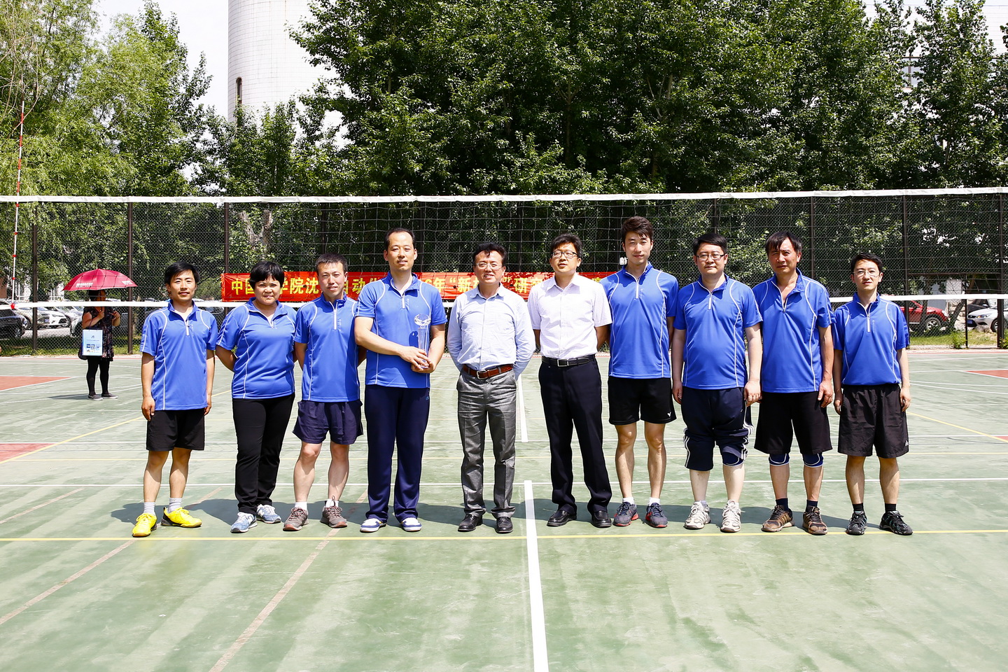 比賽結束后,沈陽自動化所工會主席孫雷宣布了比賽結果,黨委書記兼副所長桑子剛為獲獎球隊頒發了獎杯,并與隊員合影留念。