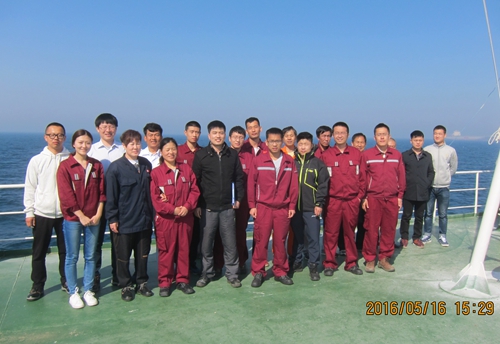 根據現場遙感分析資料和調查結果,2016年度的綠潮主要優勢種仍是滸苔(Ulva prolifera),與往年情況一致。5月下旬,大量漂浮綠藻集中在蘇北淺灘區北側34 N附近,形成了前置打撈的良好時機。6月1日以后,漂浮綠藻主體漂離蘇北淺灘北側122 E以西、34.5 聚集區,進入清水區,綠藻分布分散,生物量迅速增加。滸苔前期打撈的最佳窗口期只有2個星期左右的時間。目前,漂浮綠藻前緣已接近36N 附近海域,將對青島沿海一線構成威脅。對于后續綠潮發展態勢,項目研究團隊將進一步跟蹤分析。