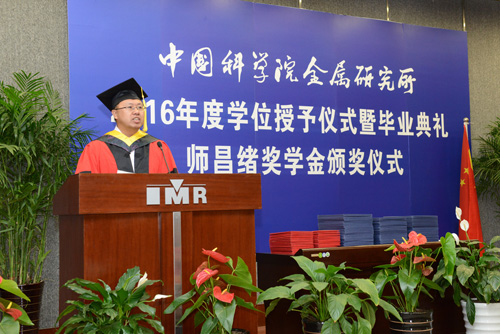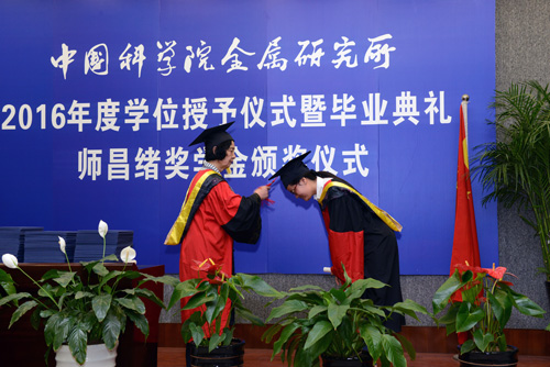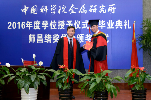 6月8日,中國科學院金屬研究所2016年度學位授予儀式暨畢業典禮、師昌緒獎學金頒獎儀式在所文化路園區學術報告廳隆重舉行。所學位評定委員會委員、所班子成員、導師代表、畢業生及其親友等出席。畢業典禮由研究生部主任劉敏主持。