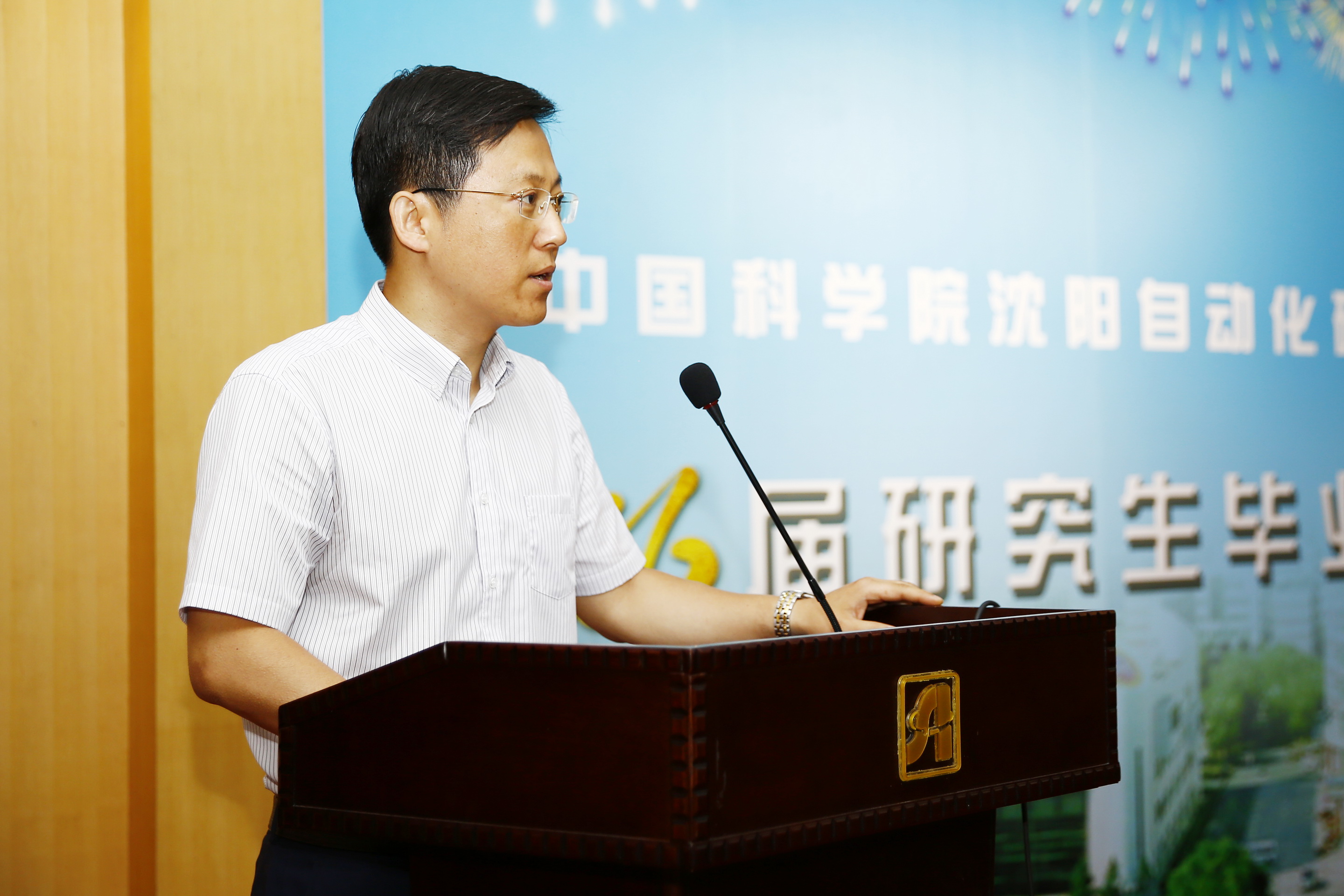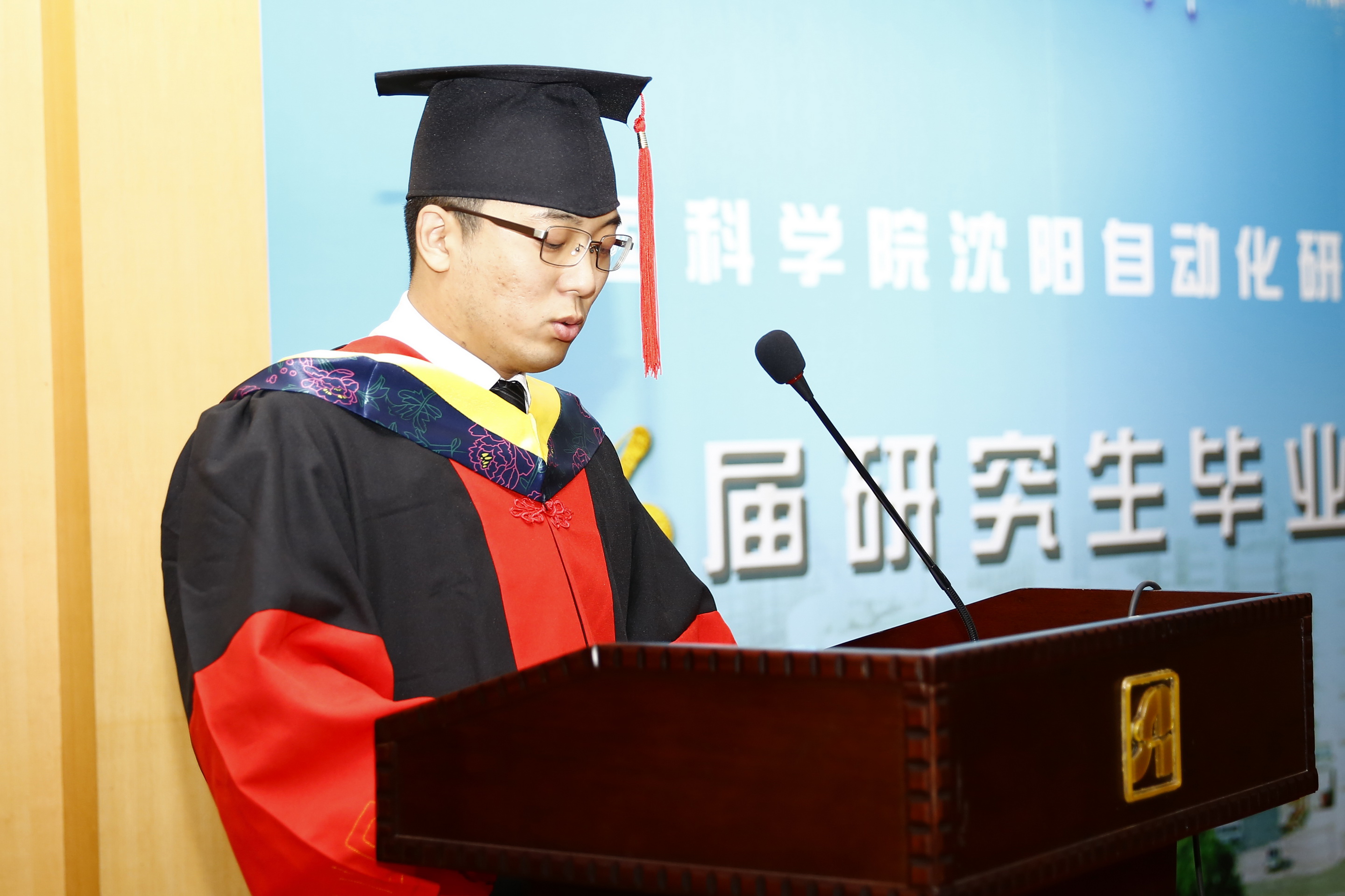 隨后,模式識別與智能系統專業2011級博士研究生宋國立代表畢業生發言。他回顧了在沈陽自動化所學習生活的點點滴滴,由衷的感謝每一位導師對自己的悉心培養和呵護,并真誠祝愿沈陽自動化所事業蓬勃發展。朱楓研究員作為導師代表發言,他希望同學們能夠保持平常心,在逆境中,堅強樂觀,永不言棄!在順境中,謙虛謹慎、戒驕戒躁。他表示,老師們始終會默默關注著同學們,支持著同學們。