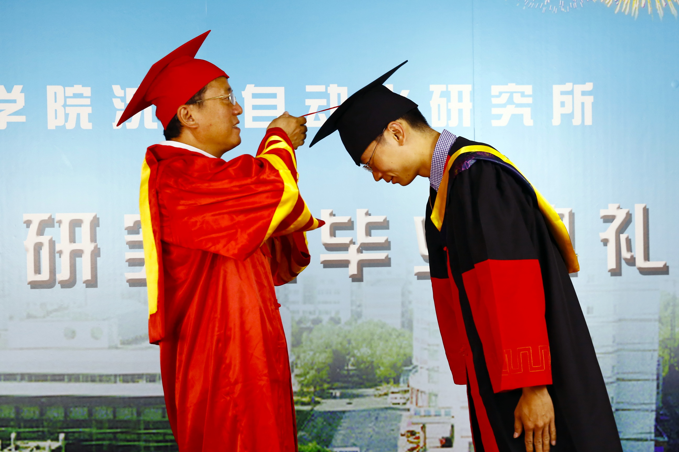 畢業典禮由周船主持。周船首先向圓滿完成學業并獲得博士、碩士學位的同學表示熱烈的祝賀,并向多年來悉心指導和培養研究生的各位導師、研究生教育工作者表示衷心感謝。他宣讀了沈陽自動化所學位委員會關于冬季授予15名畢業生學位和夏季擬授予58名畢業生學位的決定。在激動人心的樂曲聲中,桑子剛為每一位畢業生撥正學位帽上的流蘇,頒發畢業證書,發放畢業生紀念品畢業戒指,并一一合影留念。