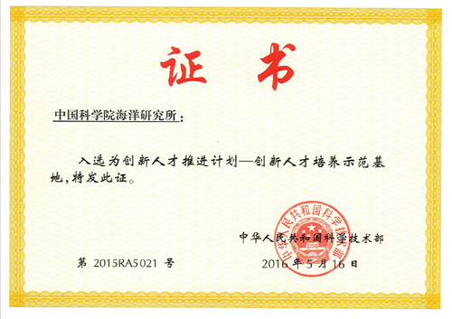 近日,科技部公布了2015年創新人才推進計劃入選名單,海洋研究所成功入選創新人才培養示范基地。