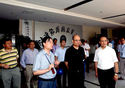 相里斌一行首先參觀了化學激光研究室、航天催化與新材料研究室和潔凈能源國家實驗室,并聽取了所內相關重大項目的最新進展匯報。相里斌就感興趣的問題不時提問,與科研人員展開了深入交流。