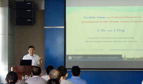 7月18日,應(yīng)金屬研究所非平衡金屬材料研究部王建強研究員邀請,美國約翰霍普金斯大學馬恩教授為金屬所研究人員和研究生作了題為“Universal Parameter to Quantitatively Predict Metallic Glass Properties”的學術(shù)報告。