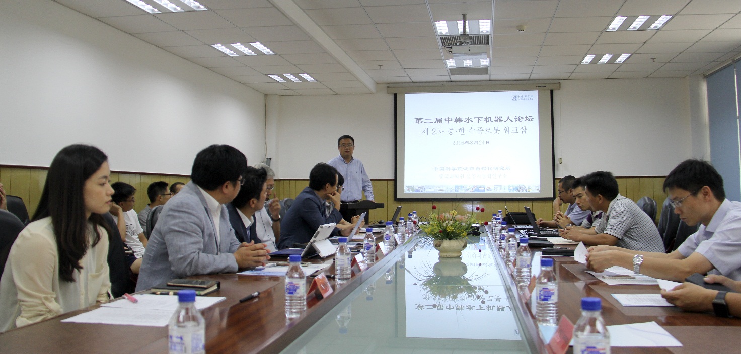 8月24日,由中國科學院沈陽自動化研究所主辦的第二屆中韓水下機器人技術論壇在沈陽成功舉行。來自韓國海洋科學技術院水下建設機器人研究中心、韓國船舶與海洋工程研究所、國家深海基地管理中心、國家海洋局北海分局和中海輝固地學服務(深圳)有限公司的專家和沈陽自動化所相關科研人員、研究生等40余人參加了本次論壇。論壇由沈陽自動化所所長助理、水下機器人研究室主任李碩主持,共有7位專家在論壇上作報告。