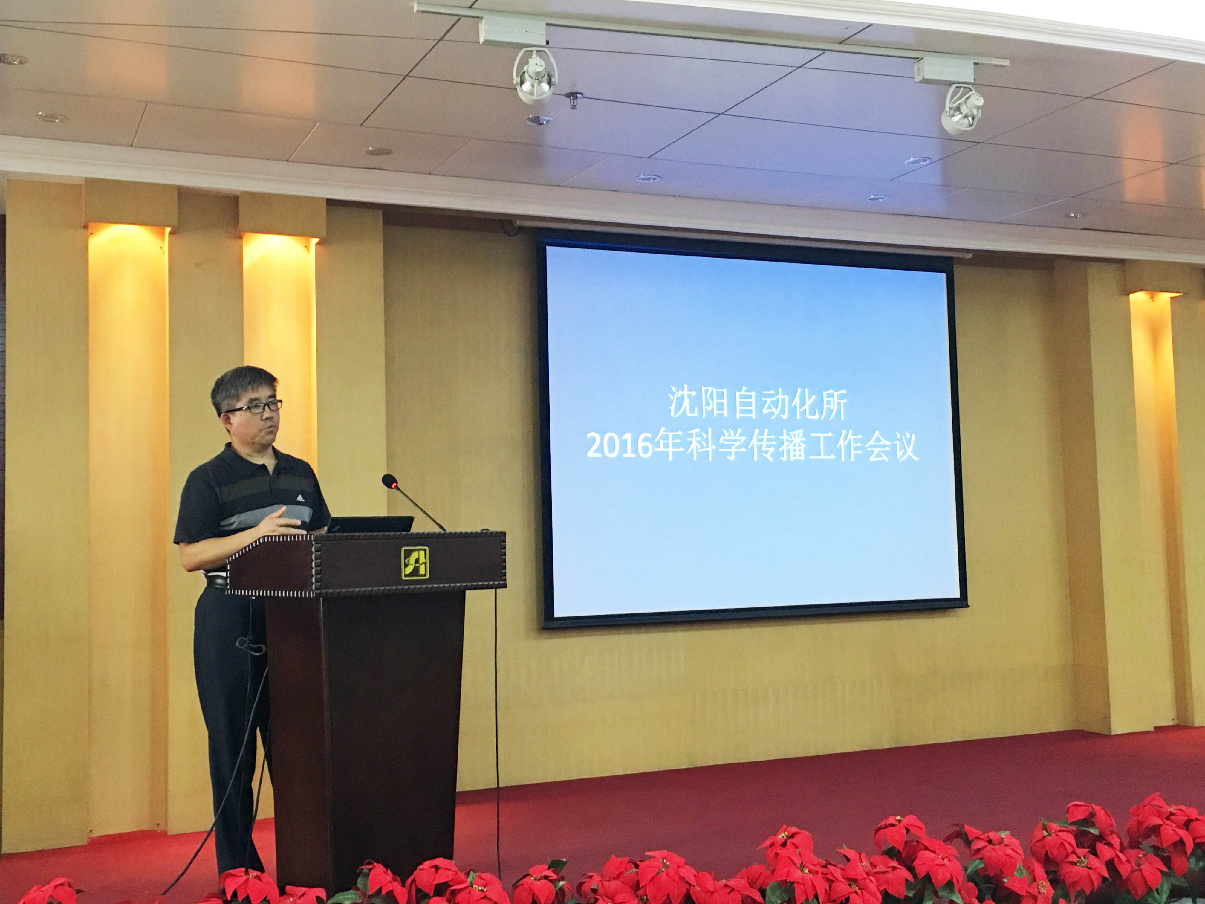劉洋首先向與會人員介紹了沈陽自動化所最新出臺的《中國科學院沈陽自動化研究所科學傳播工作實施細則》(以下簡稱《細則》)。綜合辦公室在2014年出臺的研究所科學傳播工作相關制度基礎上,根據近兩年來的工作實踐,對科學傳播工作的管理辦法進行了修訂和完善,形成了最新的《細則》,并以公文的形式下發給各部門。《細則》中新增了新媒體平臺的工作流程,進一步明確了政務信息、黨的宣傳和信息公開方面的相關管理制度和實施辦法,并著重強調了信息保密審批要求和工作流程。會上,劉洋通報了沈陽自動化所在2015年和2016年上半年的科學傳播各項工作開展情況,包括網絡宣傳、政務信息、媒體報道、黨的宣傳、科普宣傳等方面內容。
