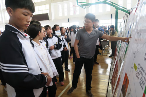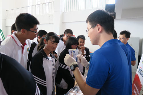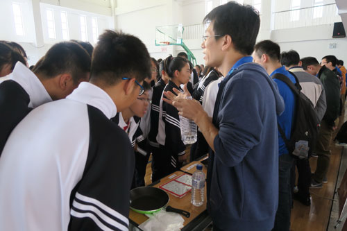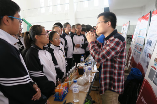 在科普參觀環節,科普志愿者們給康平高中的同學們帶去了材料認知、神奇的新材料、材料是人類文明的階梯、材料與美麗中國、核電與腐蝕等70余塊科普展板,以及形狀記憶合金、抗菌不銹鋼、3D打印材料、可溶解的鋁合金、凈水材料、五彩電解池、水果電池等10余項科普小實驗和實物展臺。圖文并茂的展板、妙趣橫生的科普實驗讓學生們大開眼界。精彩熱鬧的科普知識問答更是將整場科普盛宴推向了高潮。