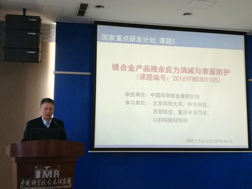 10月11日至12日,國(guó)家重點(diǎn)研發(fā)計(jì)劃項(xiàng)目“大規(guī)格高性能鎂合金變形加工材制造關(guān)鍵技術(shù)”課題“鎂合金產(chǎn)品殘余應(yīng)力消減與表面防護(hù)”在沈陽(yáng)召開了課題啟動(dòng)工作會(huì)議。課題承擔(dān)單位中國(guó)科學(xué)院金屬研究所和參與單位北京科技大學(xué)、中色科技股份有限公司、西部鈦業(yè)有限責(zé)任公司、重慶長(zhǎng)安汽車股份有限公司、山東省科學(xué)院新材料研究所的相關(guān)人員參加了啟動(dòng)工作會(huì)議。