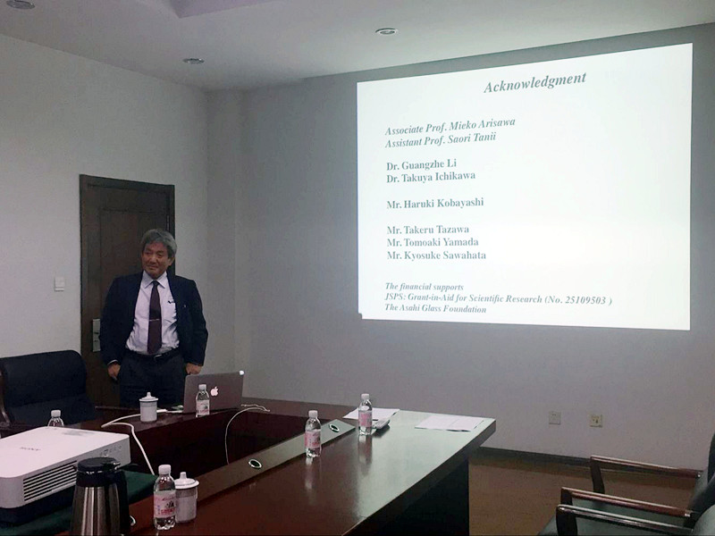 Yamaguchi教授應(yīng)邀作了題為“Transition-metal-catalyzed Synthesis of Organoheteroatom Compounds”的學(xué)術(shù)報告。Yamaguchi教授詳細地介紹了芳香族化合物C-H鍵選擇活化的控制手段以及C-H鍵選擇活化與催化劑結(jié)構(gòu)設(shè)計之間的關(guān)系,并且針對目前研究領(lǐng)域內(nèi)面臨的幾個難題:芳香族化合物C-H鍵活化與金屬活性中心的依賴關(guān)系和選擇催化路徑的控制手段等做了深入淺出的介紹。該報告結(jié)束后,參會人員就相關(guān)學(xué)術(shù)問題和研究生教育等問題與Yamaguchi教授進行了探討和交流。本次報告由生物基高分子材料團隊負責(zé)人萬曉波研究員主持。