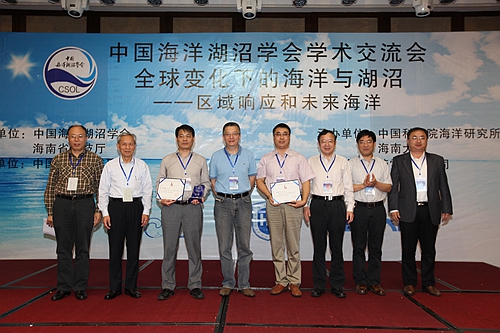 國家海洋局第一海洋研究所方國洪院士、國家海洋局第二海洋研究所陳大可院士,中國海洋湖沼學會副理事長丁平興教授、沈吉研究員,中國科學院海洋研究所黨委書記王凡研究員共同頒發了“青年科技獎”。
