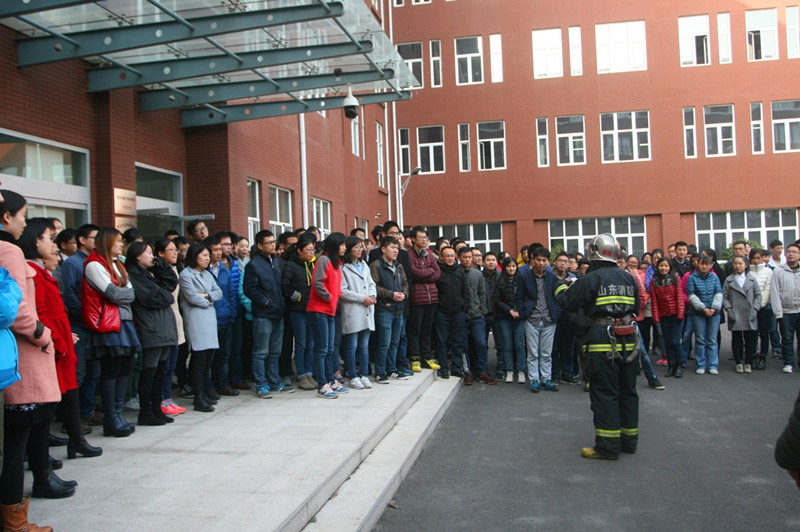 下午兩點三十分,演練正式開始。伴隨著能源樓火災警報的響起,能源樓所有人員在消防廣播和各部門安全員的指引下,迅速而有序的進行緊急安全疏散。同時各演練職能小組各司其責,立即行動,分別負責引導人員疏散、撲滅初期火災、解救危困人員、協助消防官兵滅火等。疏散人員全部到達能源樓前廣場后,消防警官對演練情況進行了講評,向大家講解了火災的基本知識,強調遇到火災后要保持鎮定,按照安全疏散路線有序逃生,切勿乘坐電梯,并示范正確的逃生方法。