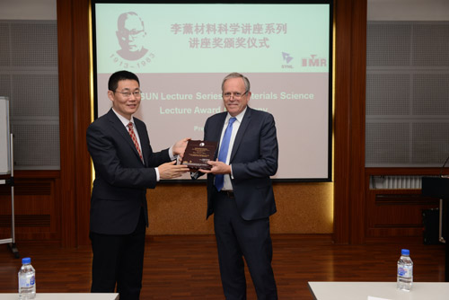 來訪期間,Damion Feron博士為金屬所科研人員和研究生作了題目為“Nuclear corrosion and materials: achievements and challenges”的李薰獎(jiǎng)報(bào)告。報(bào)告前,張健副所長(zhǎng)代表金屬所為Damion Feron博士頒發(fā)了李薰講座獎(jiǎng)獎(jiǎng)牌。頒獎(jiǎng)儀式和報(bào)告由韓恩厚研究員主持。報(bào)告得到了金屬所科研人員和研究生的熱烈歡迎,聽眾紛紛踴躍提問,就感興趣的問題與Damion Feron博士進(jìn)行討論。來訪期間,Damion Feron博與金屬所科研人員和研究生進(jìn)行了深入交流,并參觀了沈陽材料科學(xué)國(guó)家(聯(lián)合)實(shí)驗(yàn)室公共技術(shù)服務(wù)部及先進(jìn)炭材料研究部相關(guān)實(shí)驗(yàn)室。