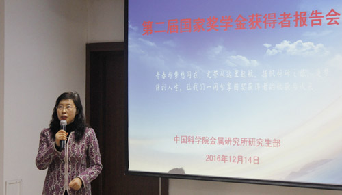 12月14日上午,“青春夢想,揚帆起航——金屬所第二屆研究生國家獎學金獲得者報告會”在郭可信樓109教室隆重舉行。張哲峰副所長、張健副所長、固體原子像研究部主任馬秀良老師、先進炭材料研究部副主任劉暢老師、周亦胄、侯鵬翔、梁靜靜等導師、研究生部的老師及百余名同學一起參加了報告會。