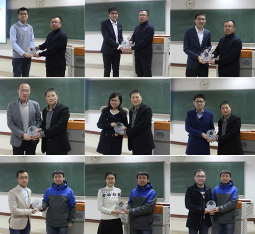 張哲峰、馬秀良、劉暢老師為報告人頒發水晶獎杯